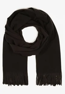 Czarny Długu Szalik Wiskozowy z Wełną Ozdobiony Frędzlami Portina