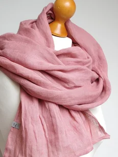 Duży szal z naturalnego lnu. Szal jest delikatny i miękki w dotyku, ładnie się układa. Tkanina ma gniecioną fakturę, przez co szal jest puszysty. Szal uszyty został wysokogatunkowego naturalnego lnu, wyprodu ...