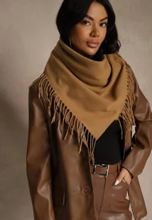 Jasnobrązowy Szalik w Kształcie Trójkąta z Frędzlami Vetifare