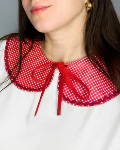 Jest to kolejny produkt z walentynkowej edycji, który doda romantyzmu nawet najprostszej stylizacji. ❤️ Piękny stylowy kołnierzyk, wiązany na dwa troczki, wzór to czerwona krateczka. 100% bawełna, produkt h ...