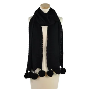 Miękki ciepły szal zakończony puszystymi pomponami.Dodatek idealny do stylizacji jesiennych i zimowych.Szal dla fanek niecodziennych akcesoriów.