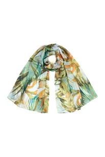 Duży wiosenno-jesienny lekki szal ozdobiony florystycznym printem w liście, praktyczny również latem. Ten dodatek momentalnie wzbogaci Twoją stylizację o żywy, kolorowy akcent i jest bardzo wygodny. Szal sprawdzi się zarówno jako lekka ochrona szyi w zimniejsze dni, jak również dodatek na plażę w postaci pareo. Zwiąż go w pasie jak sarong i ożyw swoją stylizację i pokaż światu, że jesteś gotowa na wakacje. Idealny dla wszystkich kobiet kochających kwiaty.