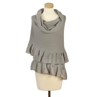 Dzianinowy szal zakończony falbaną.Wykonany z przyjemnego w dotyku materiału, może służyć nie tylko jako szal, ale także jako narzutka.Dzięki falbanie doda romantyzmu każdej stylizacji.