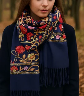 Materiał: 100% wiskoza o miękkim, przyjemnym chwycie Wygodne owijanie wokół szyi i ramion Komfortowe okrycie jak szal lub narzutka Przeznaczenie: szal damski całoroczny, idealny na co dzień i na specjalne okazje Cechy: dekoracyjne frędzle oraz folkowy motyw kwiatowy Stylowy szal damski z motywem folkowych kwiatów Ten elegancki szal damski wykonany z 100% wiskozy zachwyca miękkością oraz tym, jak pięknie układa się na sylwetce. Delikatny materiał otula skórę, zapewniając komfort zarówno w cieplejsze, jak i chłodniejsze dni, a zarazem dodaje lekkości każdej stylizacji. Szal ma na całej powierzchni subtelny, folkowy wzór kwiatowy, który przyciąga wzrok i dodaje stylizacjom etnicznego charakteru.