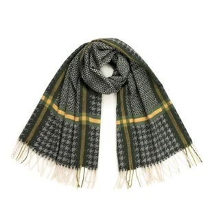 Milutki w dotyku zimowy szalik męski / szalik damski. Ozdobiony stylową kratą i frędzlami. Sprawdzi się w stylizacjach casualowych oraz eleganckich. Wykonany z niegryzącego materiału. Model unisex pasujący do różnego rodzaju garderoby.