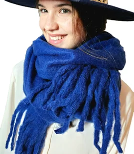 Szal szalik Gruba Chusta frędzle jednokolorowy ciepły miękki 180x45 cm