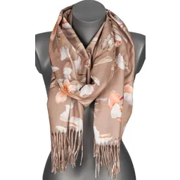Szalik damski przejściowy jesień zima KWIATY na prezent z frędzlami RC28-4 beżowy