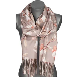 Szalik damski przejściowy jesień zima KWIATY na prezent z frędzlami RC28-5 camel
