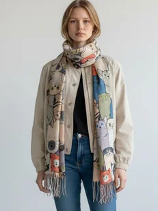 Szalik w koty wielokolorowy Stylowy Szalik z Wzorem Kotów Szukasz modnego dodatku na sezon przejściowy? Nasz długi, cienki szalik z kolorowym wzorem kotów to must-have! Lekki i przyjemny w noszeniu, doskonale uzupełnia codzienne stylizacje. Frędzle na końcach dodają lekkości i swobody, a oryginalny wzór sprawi, że wyróżnisz się z tłumu. Idealny na chłodniejsze dni, kiedy chcesz wyglądać stylowo i czuć się komfortowo! Praktyczne atuty produktu: Lekki i przewiewny materiał idealny na wiosnę i jesień. Kolorowy wzór przyciągający uwagę.