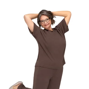 Aukcja dotyczy tylko BLUZKI DRESOWEJ koloru brązowego! Na innej aukcji dostępne są spodnie, które zestawione z bluzką tworzą modny komplet dresowy. W sprzeda...