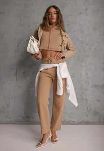 Ciemnobeżowy 2-częściowy Komplet Dresowy z Bluzą i Spodniami Orifira