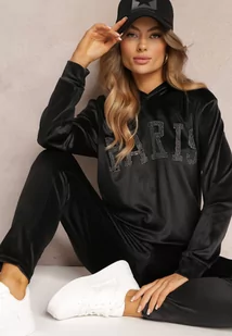 Czarny 2-częściowy Welurowy Komplet Dresowy z Bluzą i Spodniami Yamiya