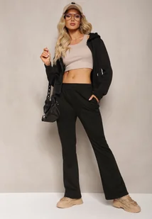 Czarny Komplet Dresowy z Bawełny Spodnie Dzwony i Rozpinana Bluza z Kapturem Auim