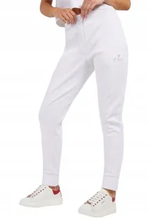 Guess Białe Proste Spodnie Dresowe z Logo i Ściągaczami M Gxa