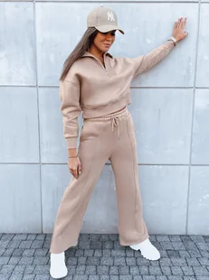 Komplet dresowy damski MARINO Komplet dresowy MARINO składający się ze spodni i bluzy z kołnierzem to must have w twojej garderobie. Spodnie z szeroką nogawką to hit tego sezonu. Model posiada również ściągacz ze sznureczkiem, dzięki któremu idealnie dopasuje się do sylwetki. Oversizowa bluza o krótszym kroju to gwarancja komfortu. Posiada ściągacz przy rękawach oraz na dole bluzy.