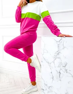 Polecamy komplet dresowy w skład, którego wchodzi klasyczna bluza w poziome, kolorowe pasy z okrągłym dekoltem, a także spodnie dresowe z komfortową gumką w pasie oraz ściągaczami przy nogawkach. Bluza: * materiał lekko elastyczny * nieocieplana * ściągacze przy rękawach i na dole * okrągły dekolt * poziome przeszycia Spodnie: * materiał lekko elastyczny * gumka w pasie * ściągacze przy nogawkach * nieocieplane * kieszenie z przodu Rozmiar M Bluza: Długość całkowita - 62 cm Szerokość w ramionach - 48 cm Szerokość od pachy do pachy - 54 cm Szerokość na dole - 50 cm Długość rękawa od ramienia - 57 cm Długość rękawa od pachy - 47 cm Spodnie: Długość całkowita - 93 cm Długość nogawki od kroku - 69 cm Wysokość stanu przód - 27 cm Wysokość stanu tył - 30 cm Szerokość w pasie - 32 cm Szerokość w udzie - 26 cm Tolerancja pomiaru +/- 1cm Skład: