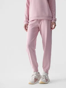Damskie Spodnie Dresowe Joggery 4F 4FWMM00TTROF0945-56S Różowe - rozmiar XL Opis towaru: Spodnie dresowe joggery damskie idealnie sprawdzą się jako element zarówno casualowych, jak i sportowych stylizacji na co dzień. Posiadają krój regular, który wygodnie dopasowuje się do sylwetki oraz zwężane nogawki zakończone elastycznym ściągaczem. Dzianina dresowa french terry z jednej strony jest gładka, natomiast z drugiej posiada widoczny splot w postaci pętelki. Dzianina w tym splocie jest miękka, bardziej lejąca i cieńsza w dotyku.