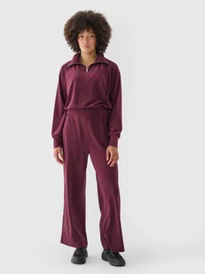 Spodnie dresowe z weluru z szerokimi nogawkami damskie 4F 4FRAW24TTROF1352-60S Czerwony