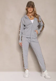 Szary Komplet Dresowy z Bluzą i Spodniami Zdobionymi Panterką Tirhiris