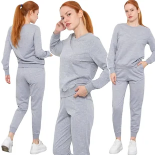 WYGODNY KOMPLET DRESOWY MODNY BASIC DWUCZĘŚCIOWY DRES DAMSKI SZARY ROZ. S
