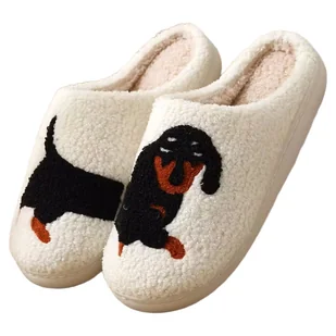 Kapcie domowe „baranki” Miękkie i urocze kapcie w stylu baranka to idealny wybór na chłodniejsze dni – otulają stopy ciepłem i zapewniają maksymalny komfort podczas codziennego użytkowania. Dzięki dodatkowemu zdobieniu w formie jamnika prezentują się wyjątkowo efektownie. Specyfikacja produktu: Materiał: tkanina (miękka i przyjemna w dotyku) Materiał podeszwy: TPR (elastyczna, antypoślizgowa, odporna na ścieranie) Wzór: