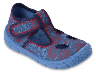 Granatowe kapcie dziecięce chłopięce na rzepy marki Befado to wygodne i praktyczne obuwie do noszenia w domu. Zapinane na rzepy ułatwiające zakładanie i zdej...