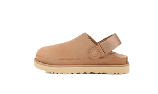 UGG Goldenstar Clog Driftwood – Komfort i Styl na Co Dzień. UGG przedstawia model Goldenstar Clog w kolorze Driftwood, łączący klasyczny design z nowoczesnymi materiałami, oferując wygodę i styl na co dzień. . Cechy produktu: . Cholewka: Wykonana z wysokiej jakości zamszu certyfikowanego przez Leather Working Group, zapewnia trwałość i elegancki wygląd. . Pasek na pięcie: