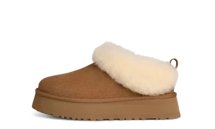 UGG Tazzelle Slipper Chestnut to nowoczesne kapcie w stylu ikonicznego modelu Tazz, zaprojektowane z myślą o komforcie w domu i na zewnątrz. Wykonane z miękkiego zamszu w klasycznym kolorze Chestnut i wyściełane mieszanką UGGplush™ (wełna + lyocell), zapewniają wyjątkową miękkość i ciepło. . Ich podwyższona, lekka podeszwa EVA nadaje butom streetwearowy charakter i pozwala na wygodne noszenie poza domem. Idealne do codziennych, casualowych stylizacji. . Zalety: . Zamsz premium – trwały, elegancki i przyjemny w dotyku.