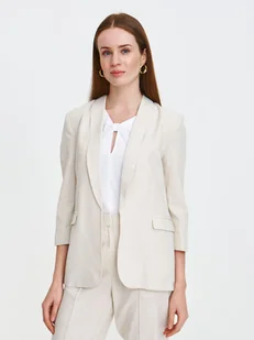 Żakiet damski Top Secret o klasycznym prostym fasonie. Urzekający wieloma możliwościami praktycznego wykorzystania, żakiet damski o klasycznym prostym fasonie z rękawami o długości ¾ oraz okrągłymi zakończeniami u dołu. Posiada on małe patki kieszeni oraz lekko przedłużone poły marynarki, będąc wykonanym z przyjemnej w dotyku oraz dobrej gatunkowo dzianiny z dodatkiem bawełny oraz tak poszukiwanego latem lnu. Będzie on doskonałym uzupełnieniem wszelakich kobiecych stylizacji oficjalnych czy też wyjściowych, sprawdzając się zarówno z eleganckimi długimi spodniami, jak i również spódnicą. Żakiet damski dostępny w kolorze beżowym TSKL25ZAK001080X00.