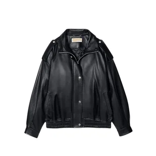giacche donna michael kors - oversized leather blouson - nero