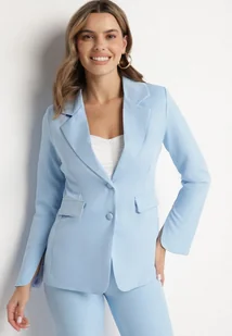 Jasnoniebieska Marynarka z Usztywnionymi Ramionami i Imitacją Kieszeni Halonia