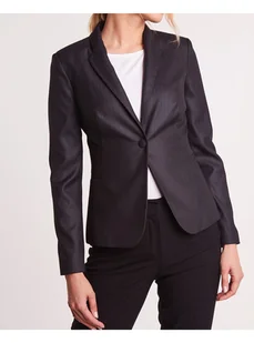 Marynarka o dopasowanym kroju (slim fit), wykonana z eleganckiej tkaniny w odcieniu grafitowym z subtelnym połyskiem. Zapinana na guzik w kolorze materiału. Idealna do oryginalnego podkreślenia ka ...