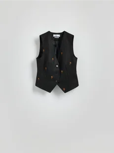 Reserved - Garniturowa kamizelka z haftem - ciemnoszary
