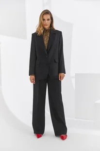 Fason: klasyczny, przedłużany model żakietu. Szyte w Polsce. Skład: Tkanina: 100% wełna ; Podszewka: 100% wiskoza Wzrost modelki 178 cm. Modelka ma na sobie rozm.