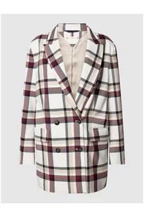 Żakiet damski Tommy Hilfiger;Mieszanka materiałów z dodatkiem wiskozy;Luźny krój;Model GLOBAL STRIPE CHECK;Wzór w kratę;Kołnierz z połami;Dwurzędowa listwa guzikowa;Brustasza;Kieszenie z patką;Aplikacja z metką;Długość tyłu w rozmiarze 36: 76 cm;Szerokość klatki piersiowej w rozmiarze 36: 40 cm;Długość rękawa w rozmiarze 36: 58 cm