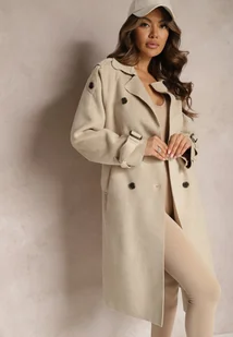 Beżowy Płaszcz o Dwurzędowym Fasonie z Paskiem Nivela