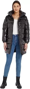 Calvin Klein Jeans Damskie błyszczące długie dopasowane płaszcze wyściełane, Czarny, S
