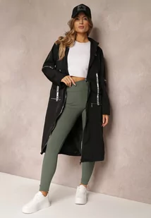 Czarny Płaszcz z Regulowaną Długością i Ozdobnymi Wstawkami Nainika