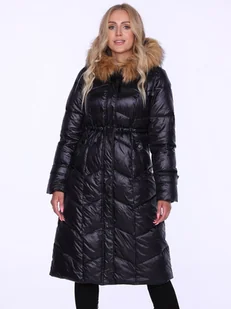 Damski zimowy płaszcz taliowany z kapturem S Czarny
