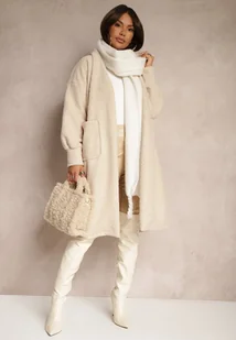 Jasnobeżowy Płaszcz Boucle Niezapinany Zopho