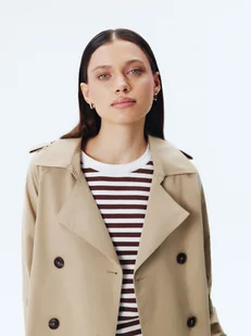 Odkryj klasyczną elegancję z naszym krótkim trenczem dwurzędowym, idealnym do każdej garderoby. Ten stylowy płaszcz łączy w sobie ponadczasowy design z nowoczesnymi akcentami, dzięki czemu doskonale nadaje się na różne okazje - od codziennych wyjść po bardziej formalne spotkania. Nasza propozycja to nie tylko modny wygląd, ale również funkcjonalność. Trencz został zaprojektowany z myślą o wygodzie użytkowania i łatwej pielęgnacji. Wybierz nasz krótki trencz dwurzędowy i ciesz się nie tylko stylowym wyglądem, ale i łatwością jego pielęgnacji.