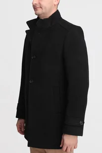 Elegancki czarny płaszcz jednorzędowy wykonany z wełny to idealna propozycja dla ceniących sobie klasykę i prawdziwe ciepło.