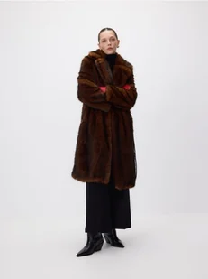 Reserved - Płaszcz ze sztucznego futra z paskiem - brązowy
