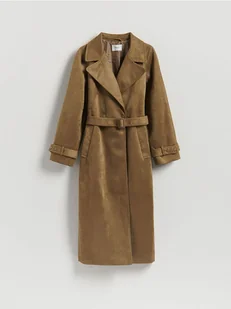 Reserved - Trencz z imitacji zamszu - oliwkowy