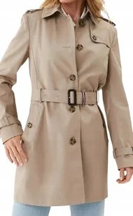 TOMMY HILFIGER PŁASZCZ TRENCZ BEŻOWY KRÓTKI Z PASKIEM XS J5E