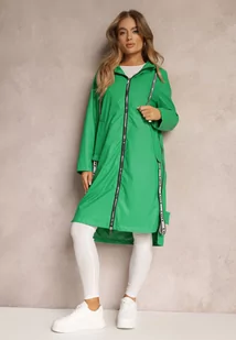 Zielony Płaszcz za Kolano z Tasiemką i Kapturem Penela