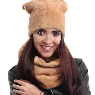AGNES KOMPLET CZAPKA + KOMIN FUTRO TUNEL TUBA SZALIK MIŚ - NKP-03-20-059-BEZ
