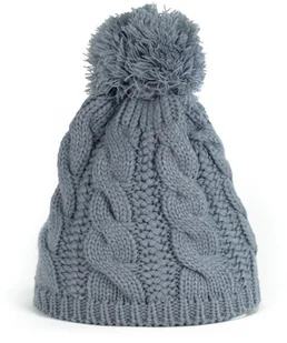 Ciepła czapka z pomponem. Zdobione klasycznym splotem w warkocze.
