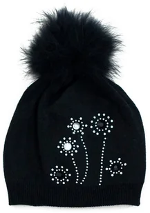 Czapka z pomponem z jenota ze szlachetnej dzianiny z dodatkiem kaszmiru. Ozdobiona kamyczkami układającymi się we florystyczny motyw przywodzący na myśl dmuchawce. Czapka stworzona jest dla fanek niebanalnych zimowych dodatków z k