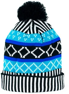 Podwijana czapka w graficzne wzory. Zakończona pomponem. Wykonana z niegryzącego materiału. Idealna do miejskich stylizacji.